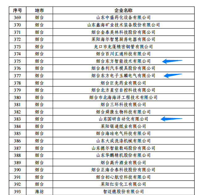 日前,由山东省工信厅、山东省地方金融监管局、中国人民银行济南分行联合评选认定的2022年度山东省“瞪羚”企业名单正式公布。我集团公司的烟台云联商城玉麟电气有限公司、山东国研自动化有限公司、烟台东方智能技术有限公司等三家权属企业入选,认定日期为即日起至2025年12月31日。